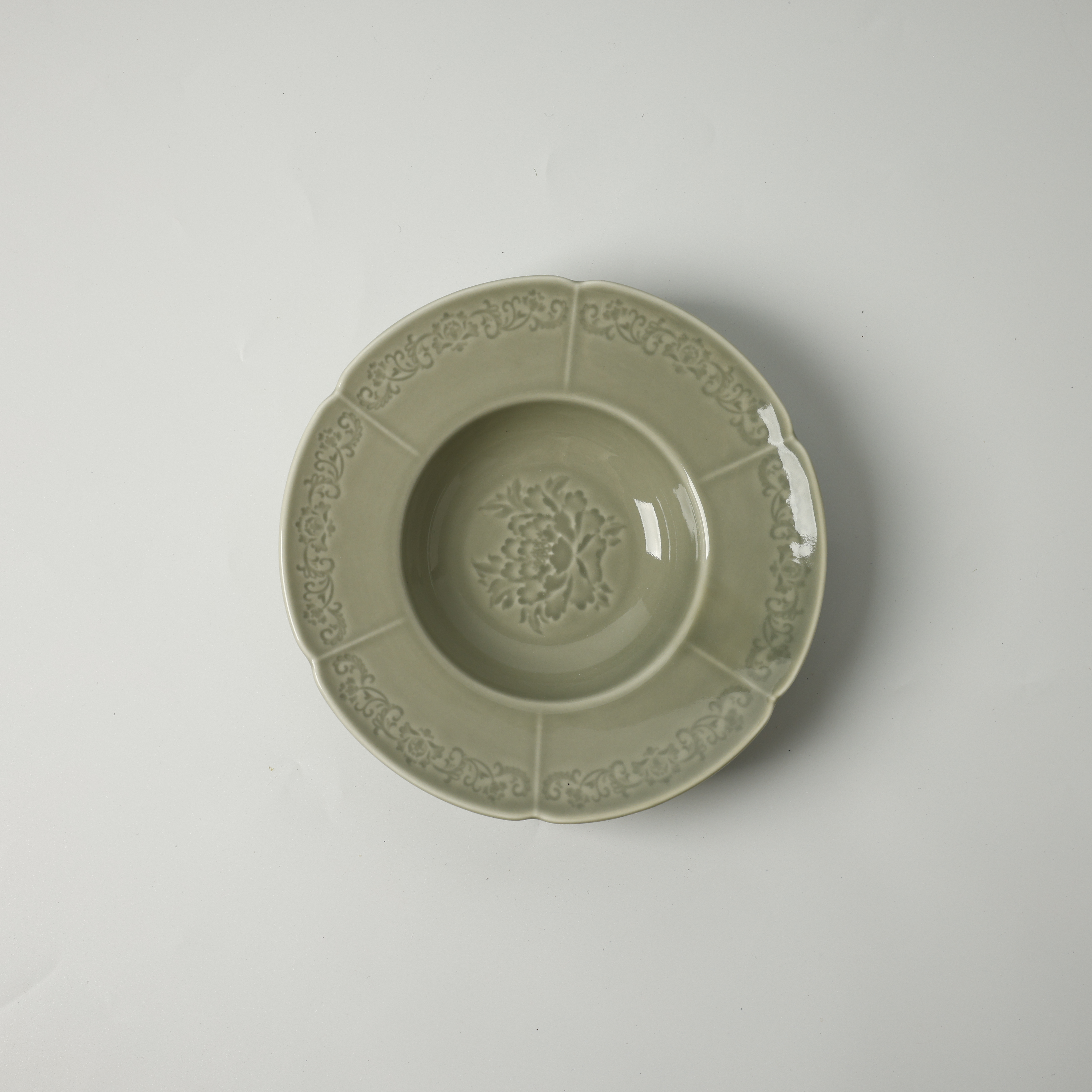 Тарелка глубокая зеленая Camelia, глянцевая, 22х4.7 см, фарфор (JET, арт. HS231653)