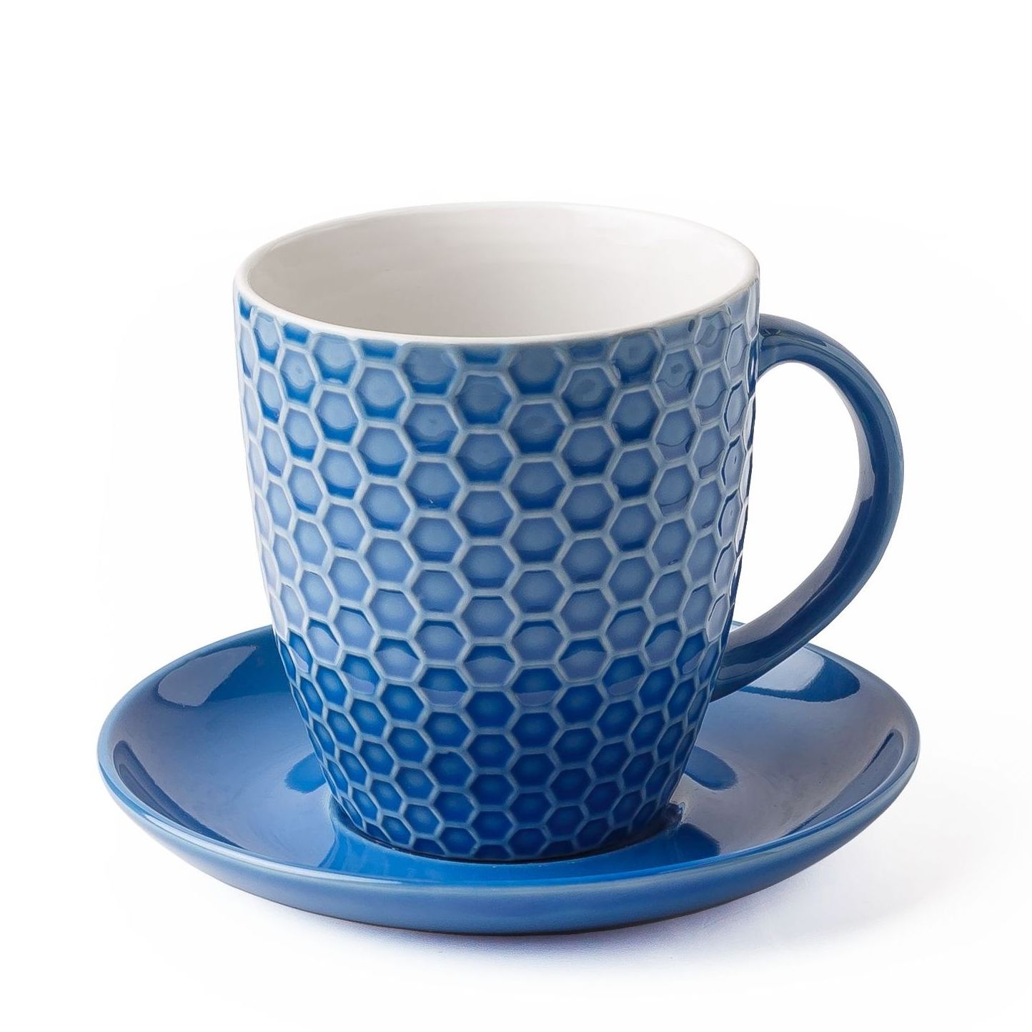 Набор из двух кружек с блюдцами, 350 мл, Жёлтая/ Синяя, каменная керамика (арт. HL1254880-HL940870)