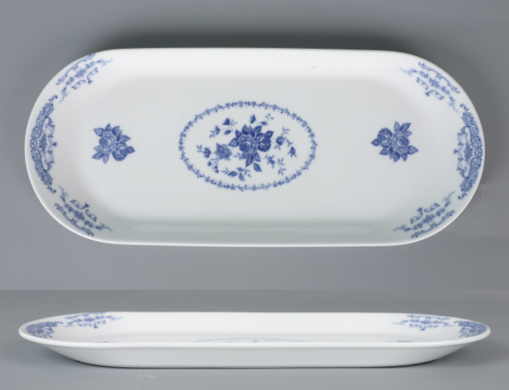 Тарелка прямоугольная темно-синяя, Retro Rose, глянцевая, 33,3 х 14 х 2 см, фарфор (JET, арт. C9300253)